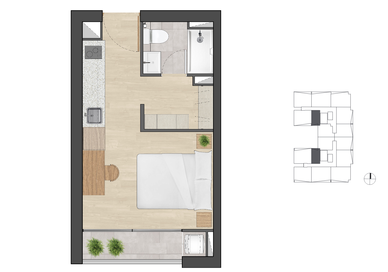 Diseñado por el reconocido estudio de Orlando Gatica, su interior destaca por un sello distintivo de calidad y una distribución inteligente que lo posiciona por encima de muchos otros departamentos en su categoría. Disponible en versiones de 1 y 2 dormitorios, este proyecto combina a la perfección la tranquilidad y la armonía de su entorno, con el equilibrio y funcionalidad de sus espacios internos