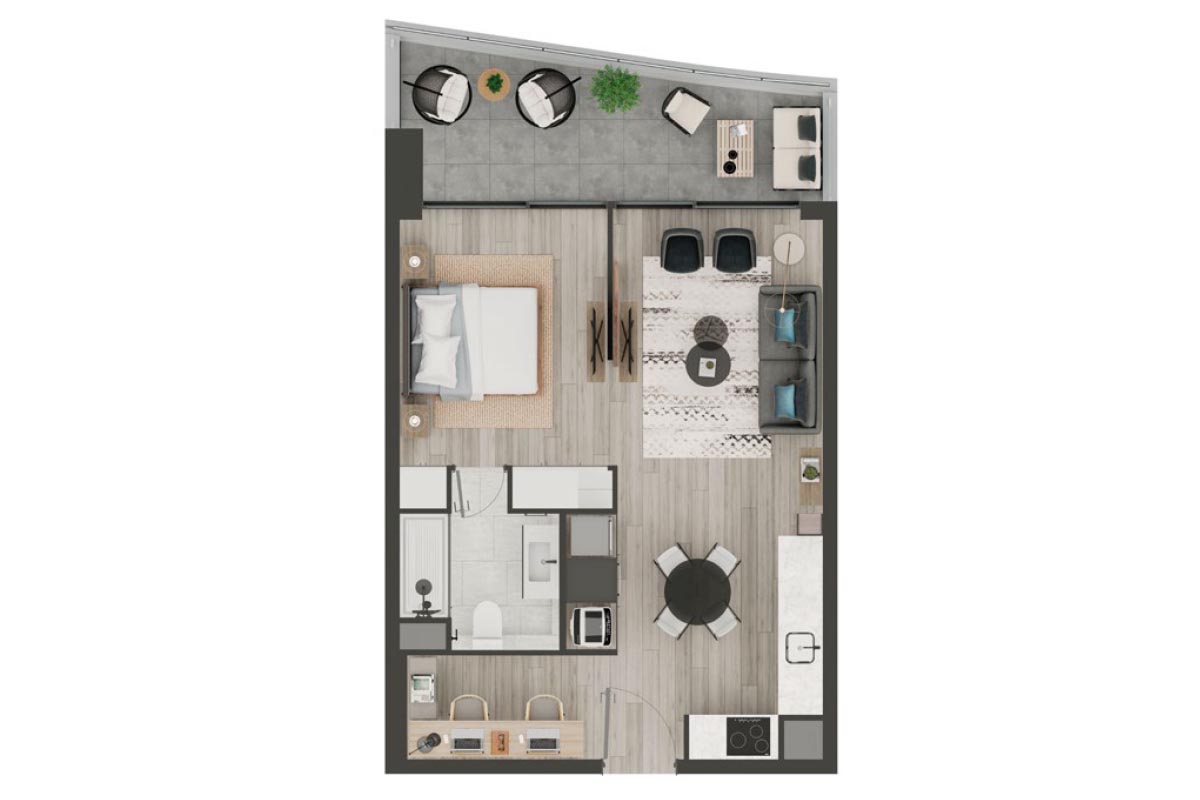 1 dorm + home office - (sur oriente) - 52.14m2