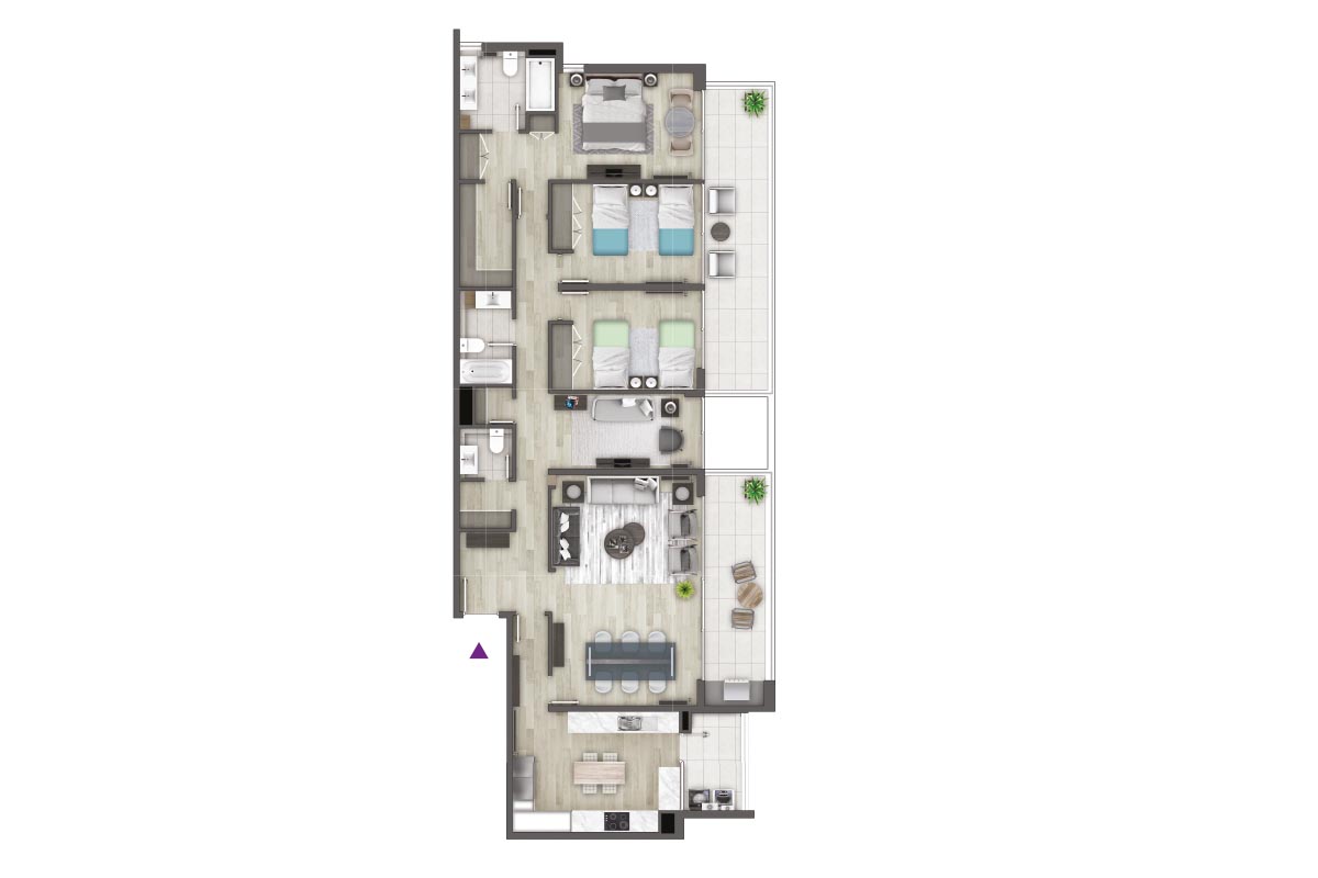 3 dorm + 3 baños - (sur) - 147.71m2